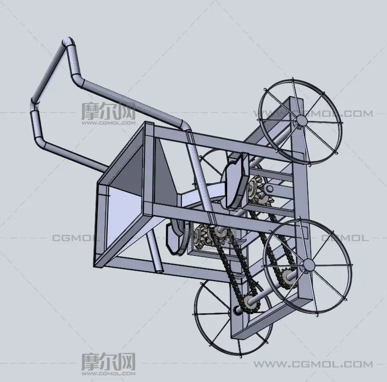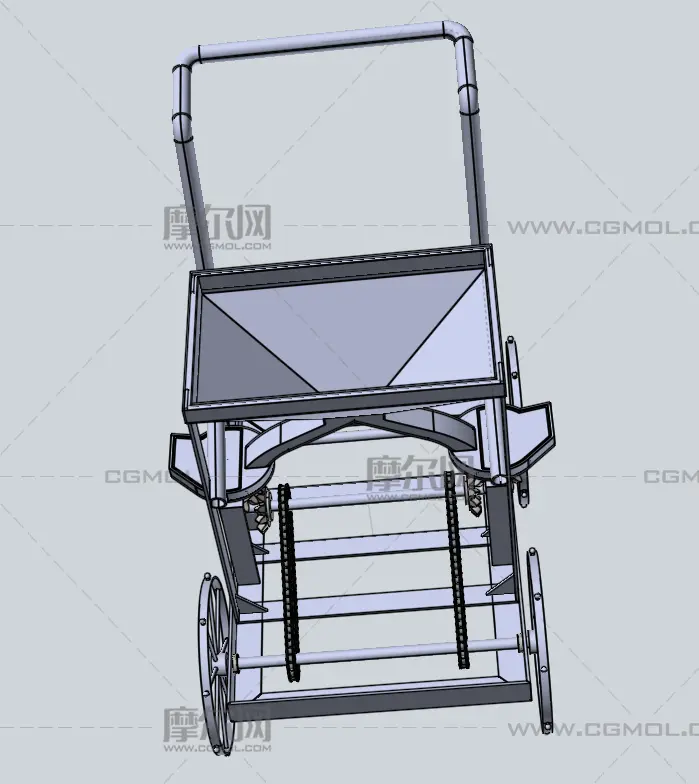 肥料撒播机, 该作品由作者(机械大攻城狮)上传发布。 文件格式有:igs, 建议使用solidworks2018等软件打开。文件大小: 2.02MB