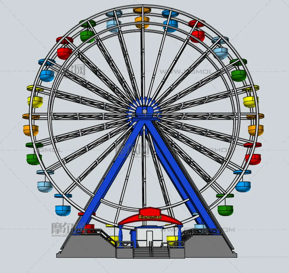 摩天轮简易模型, 该作品由作者(机械大攻城狮)上传发布。 文件格式有:stl, step, 建议使用Rhino6等软件打开。文件大小: 13.23MB