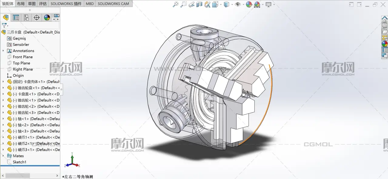 三爪卡盘, 该作品由作者(MOL210936BWACH)上传发布。 文件格式有:sldprt, sldasm, 建议使用solidworks2019等软件打开。文件大小: 2.48MB