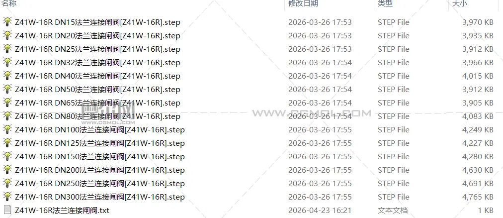 Z41W-16R法兰连接闸阀,多种规格, 该作品由作者(机械大攻城狮)上传发布。 文件格式有:step, 建议使用solidworks2018等软件打开。文件大小: 11.51MB