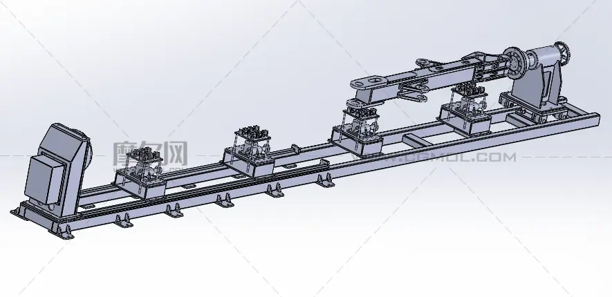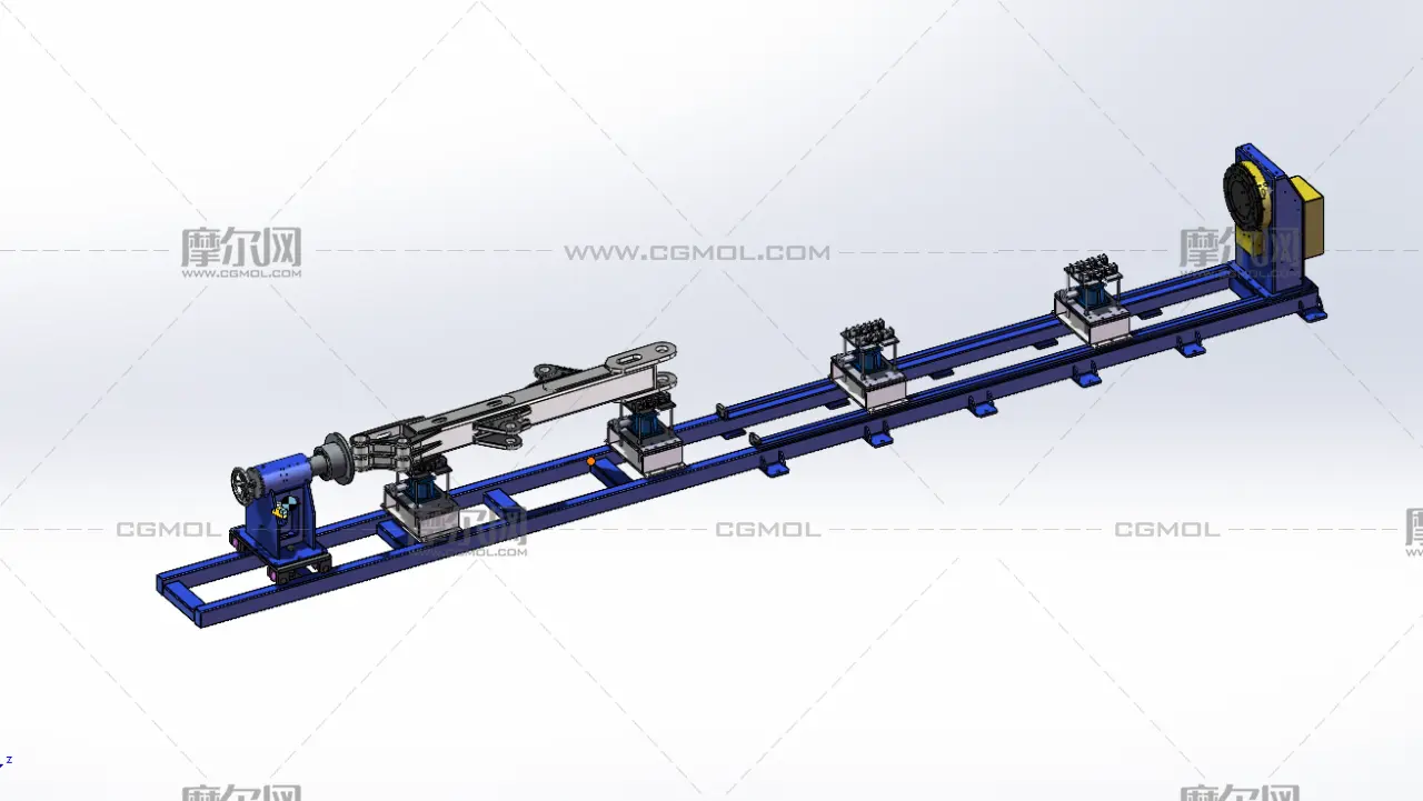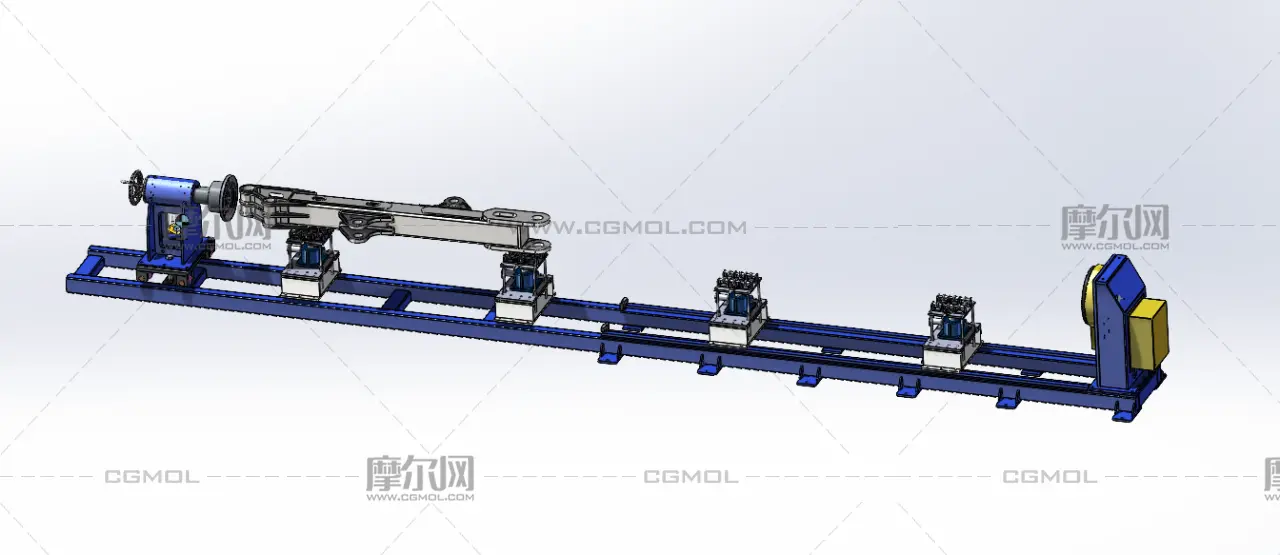 这是一台非标定制的超长头尾式环缝焊变位机,专为挖掘机臂、长管道等大跨度重型工件设计。设备采用双端驱动 + 多组可调支撑托架,导轨式结构可灵活适配不同工件长度,保障旋转同轴度,有效抑制焊接变形。伺服驱动实现高精度旋转,可直接对接机器人焊接工作站,大幅提升长件环缝焊接的效率与质量一致性。
