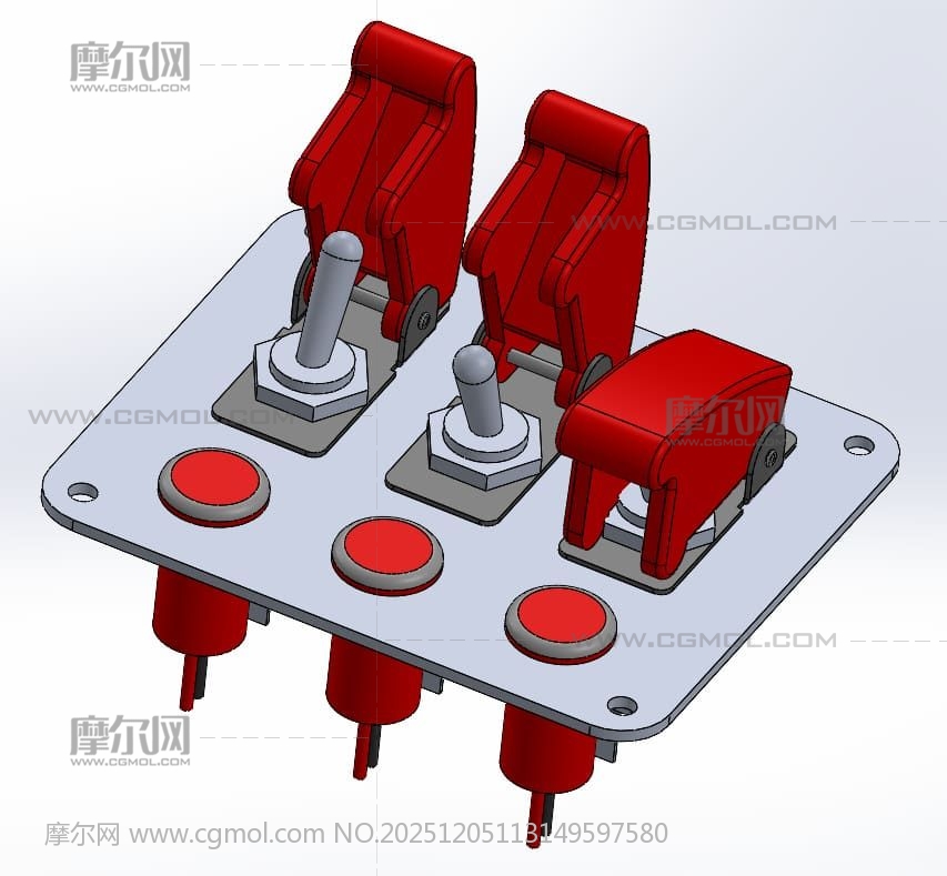 3排红色安全盖拨动开关,带指示灯, 该作品由作者(机械大攻城狮)上传发布。 文件格式有:sldasm, 建议使用solidworks2019等软件打开。文件大小: 1.73MB