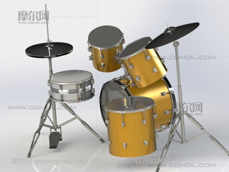 架子鼓drum set,爵士乐队敲击乐器3D模型素材全装配