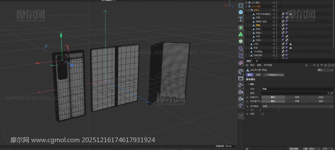C4D中有折叠 展开 半展开模型,C4D为素模