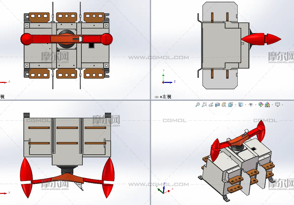 断路器隔离开关, 该作品由作者(机械大攻城狮)上传发布。 文件格式有:sldprt, sldasm, step, 建议使用solidworks2019等软件打开。文件大小: 3.68MB