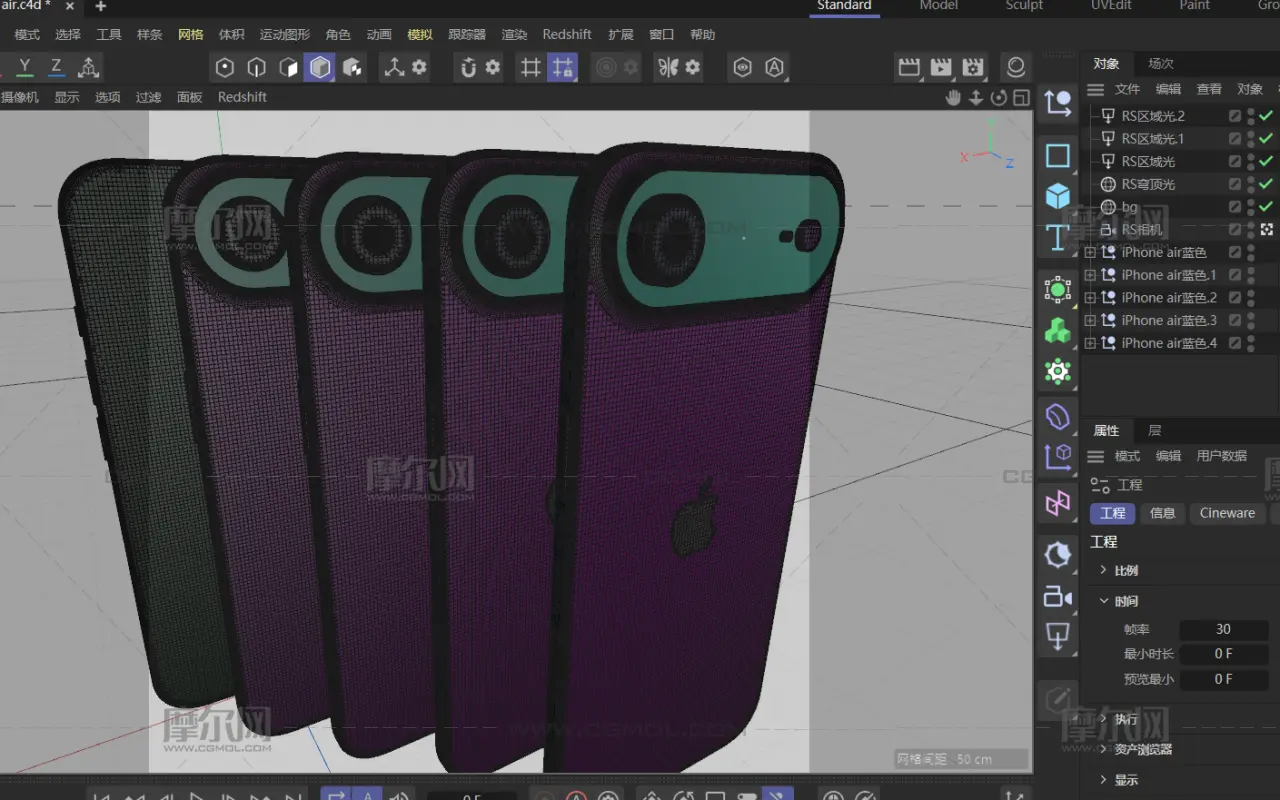 苹果17 iPhone air,C4D有贴图,体贴格式为素模