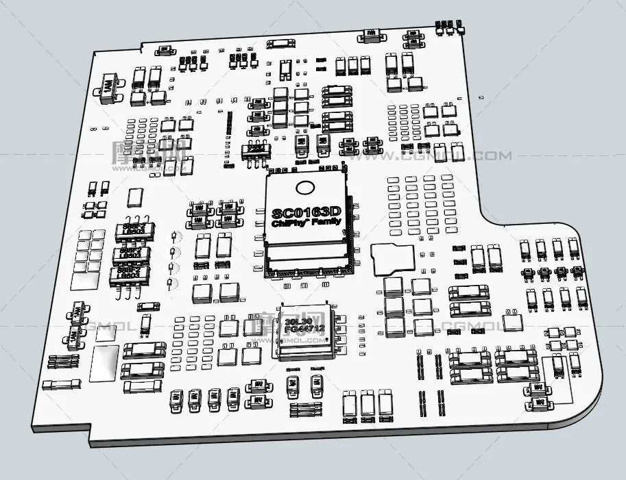 电路板模型, 该作品由作者(机械大攻城狮)上传发布。 文件格式有:stp, 建议使用proe等软件打开。文件大小: 8.44MB