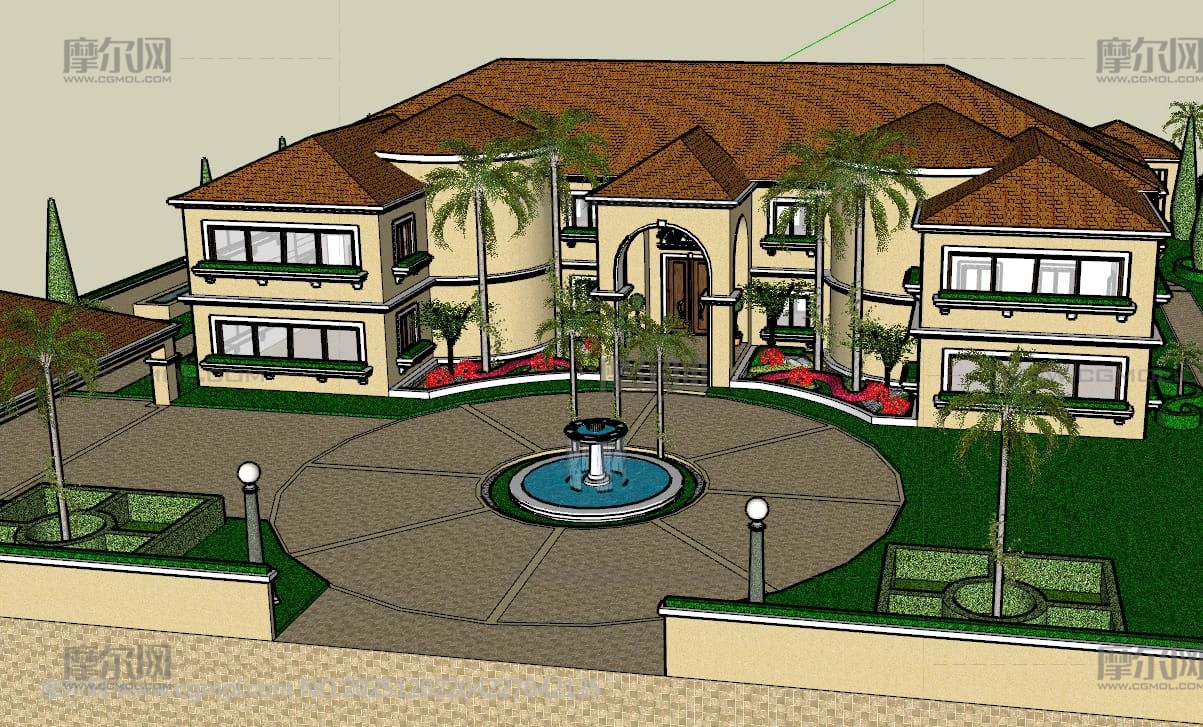 西班牙式别墅, 该作品由作者(机械大攻城狮)上传发布。 文件格式有:skp, 建议使用sketchup2019等软件打开。文件大小: 3.99MB