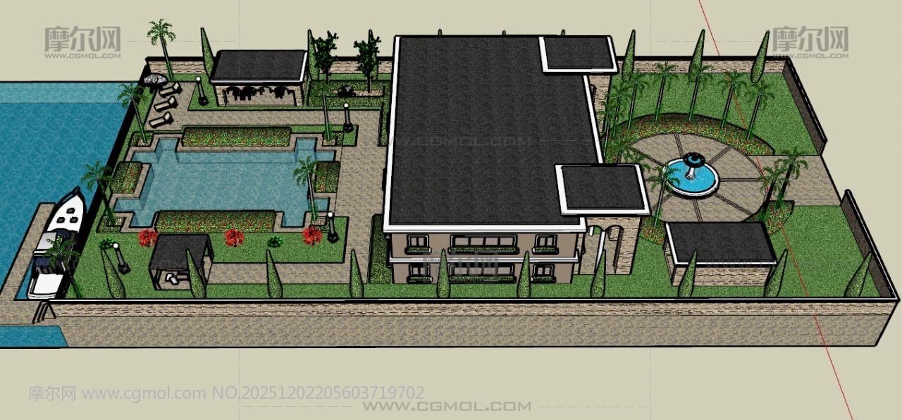 湖边的豪宅, 该作品由作者(机械大攻城狮)上传发布。 文件格式有:skp, 建议使用sketchup2019等软件打开。文件大小: 2.57MB