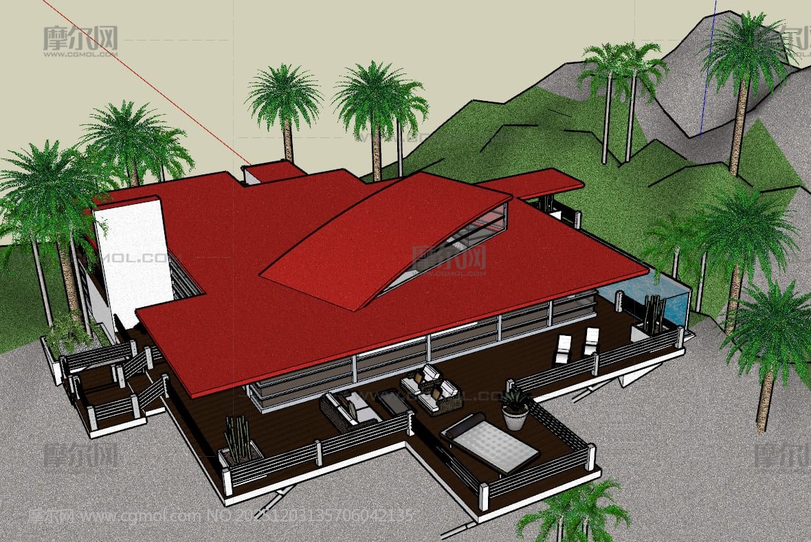 山上的现代房子, 该作品由作者(机械大攻城狮)上传发布。 文件格式有:skp, 建议使用sketchup2019等软件打开。文件大小: 5.38MB