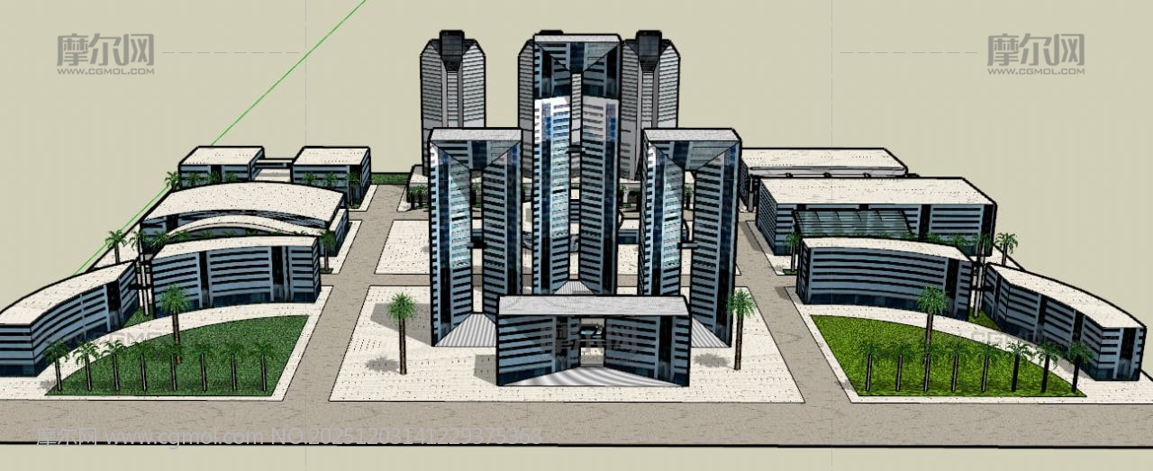 商务中心大楼, 该作品由作者(机械大攻城狮)上传发布。 文件格式有:skp, 建议使用sketchup2019等软件打开。文件大小: 2.15MB