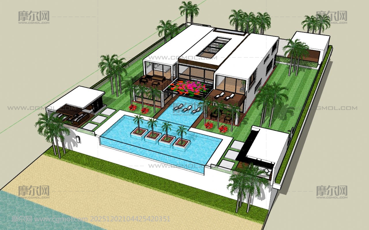 豪华海滨别墅, 该作品由作者(机械大攻城狮)上传发布。 文件格式有:skp, 建议使用sketchup2019等软件打开。文件大小: 11.63MB