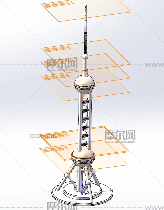 东方明珠塔, 该作品由作者(机械大攻城狮)上传发布。 文件格式有:stl, sldprt, 建议使用solidworks2019等软件打开。文件大小: 3.37MB