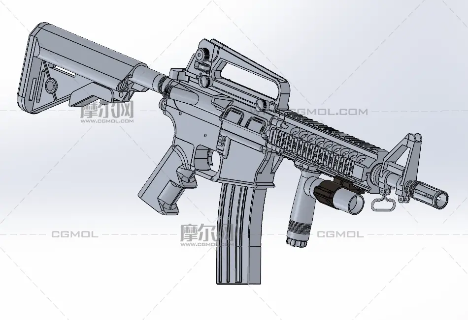 MK18步枪, 该作品由作者(机械大攻城狮)上传发布。 文件格式有:stp, 建议使用solidworks2018等软件打开。文件大小: 4.84MB